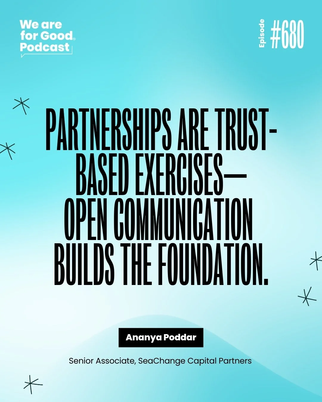 “We tell nonprofits we work with: once you’re confident a partnership will materialize, go to your funders before a public announcement, framing it as a way to grow impact.” - Ananya Poddar